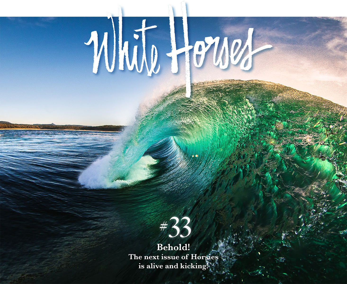 It’s been an absolute pleasure and privilege working with you, and only fitting that it’s been on a publication as excellent as Horsies. Your wildlife and empty wave images have always been a highlight for me, and I hope we get to collaborate some more in the future.